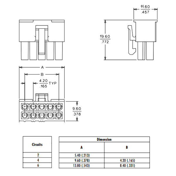 Conector Mini-Fit 4,20mm 2C 2x1 Hembra