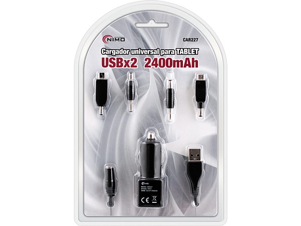 Cargador de coche para tablets y móviles 12V / 2USB x 4,8A