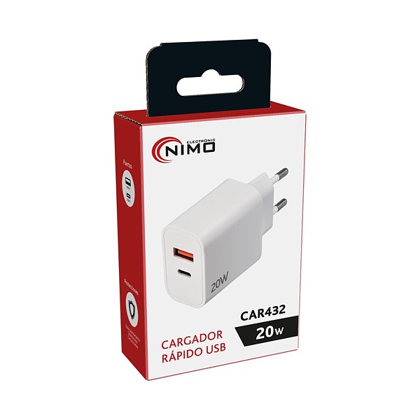 Cargador con salida USB-C y USB-A, con carga rápida y eficiente para tus dispositivos móviles como smartphones, tablets, etc. compatibles con carga PowerDelivery, Quick Charge, a través de los puertos USB de salida.