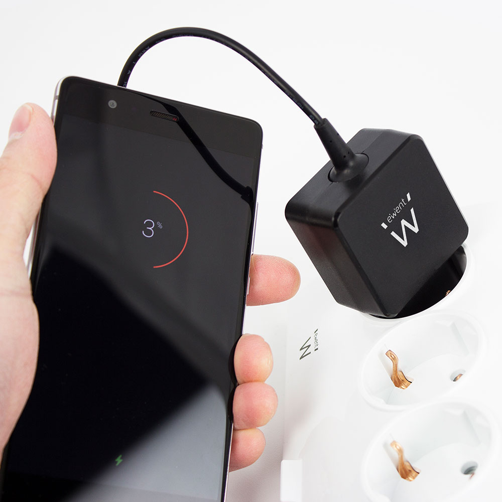 El cargador doméstico EW1305 de 3A carga su teléfono inteligente/tableta con un conector USB tipo C. Este cargador tiene un cable extra largo de 175 cm. Puede moverse más libremente con su teléfono inteligente/tableta sin sentarse junto a la toma de corriente. El EW1305 tiene protección contra sobrecalentamiento, protección contra sobretensión, protección contra cortocircuitos. Diseño compacto.