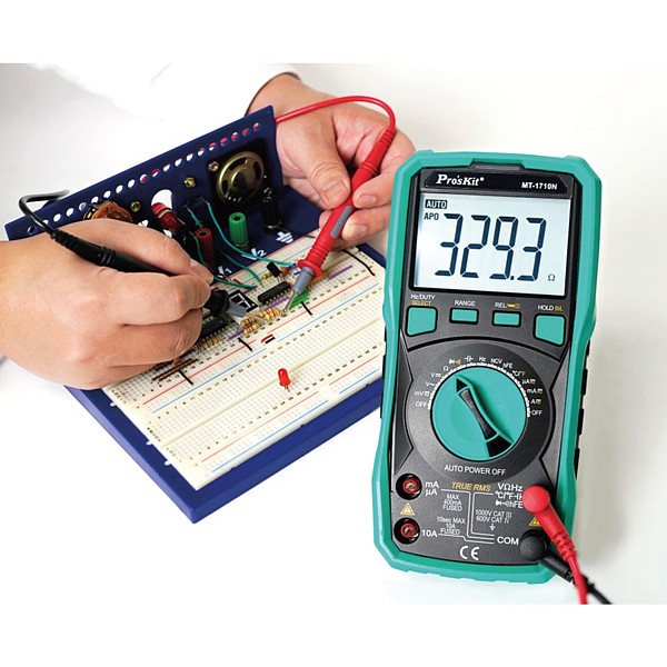 Multímetro autorrango, especialmente diseñado para mediciones precisas, ideal para una gran variedad de aplicaciones de pruebas tanto eléctricas como electrónicas.
